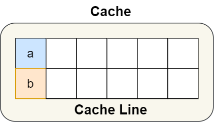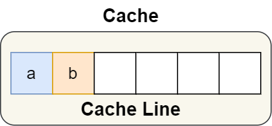结构体里的两个成员变量 a 和 b 在物理内存地址上是连续的,于是它们可能会位于同一个 Cache Line 中,如下图